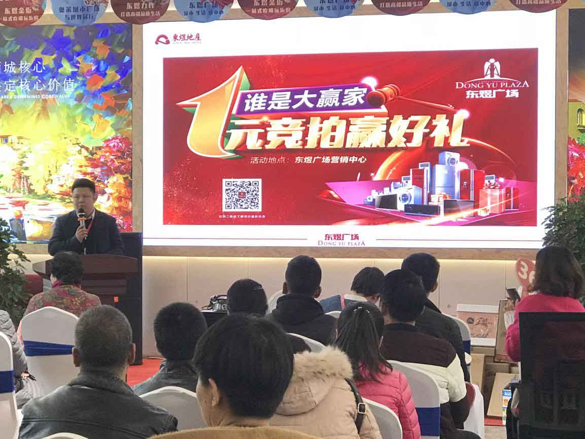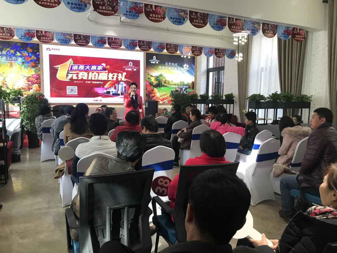 12月1日下午,东煜广场展示中心举行了“一元竞拍”活动,客户到访参加活动,现场准备甜品、水果、热饮、精彩的舞蹈、歌唱节目,现场准备各种精美家电,起拍价均为1元,客户可随意叫价,最终价高者得家电。
