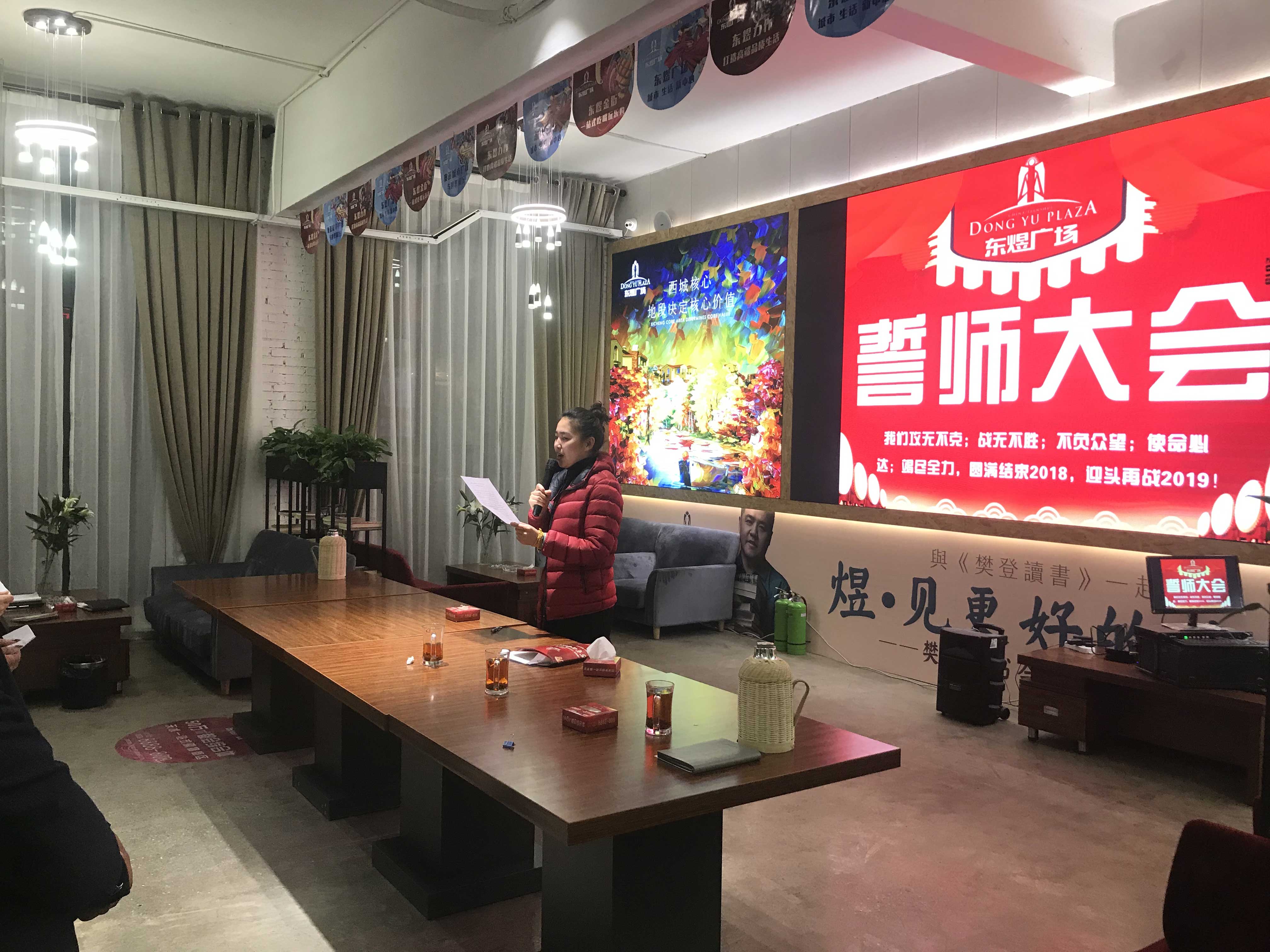 12月26日下午5点,东煜广场项目开盘誓师大会在广场展示厅隆重召开。大会的主要任务是动员和号召公司全员上下众志成城、艰苦奋战、全力冲刺,确保12月30日项目开盘活动顺利进行,力争销售成绩节节高升。集团副总裁王辉、地产总经理王小军、地产副总周治博等领导出席会议并提出指导性意见。
